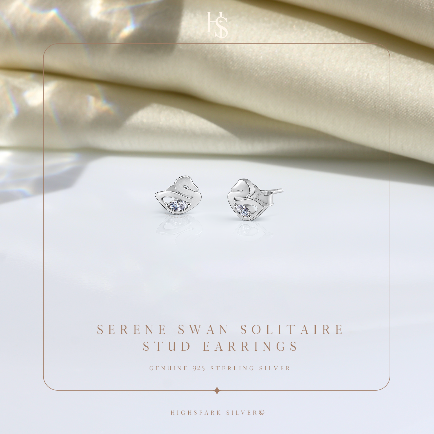 Serene Swan Solitaire Stud Earrings in 925 Sterling Silver For Women