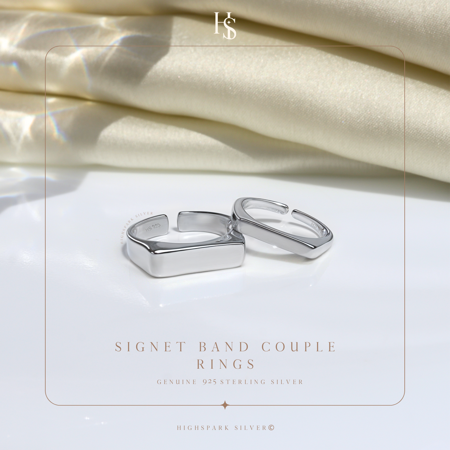 Signet Band Couple Rings For Men & Women in 92.5 Sterling Silver