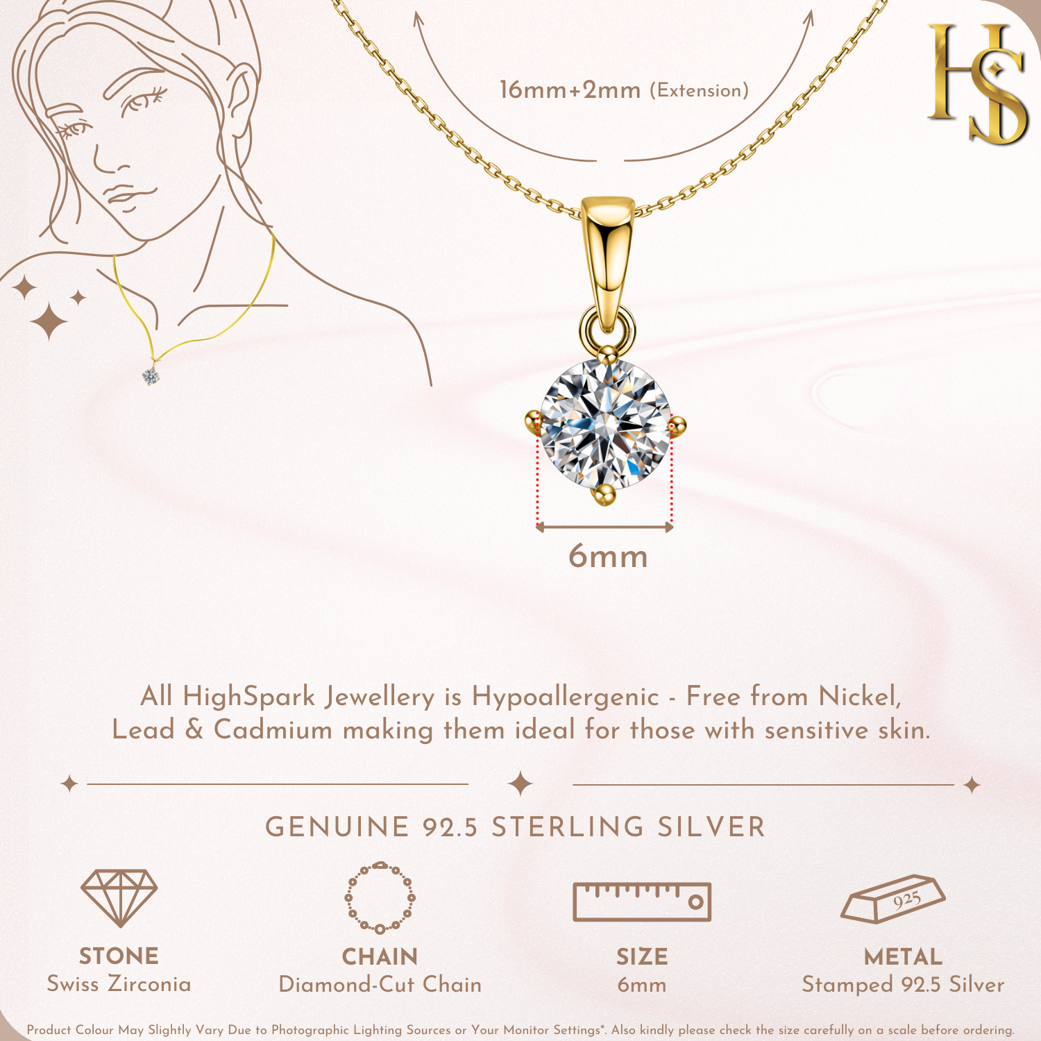 Solitaire Pendant with Chain in 92.5 Silver embellished with Sparkling Zirconia - 18K Gold finish - 6MM