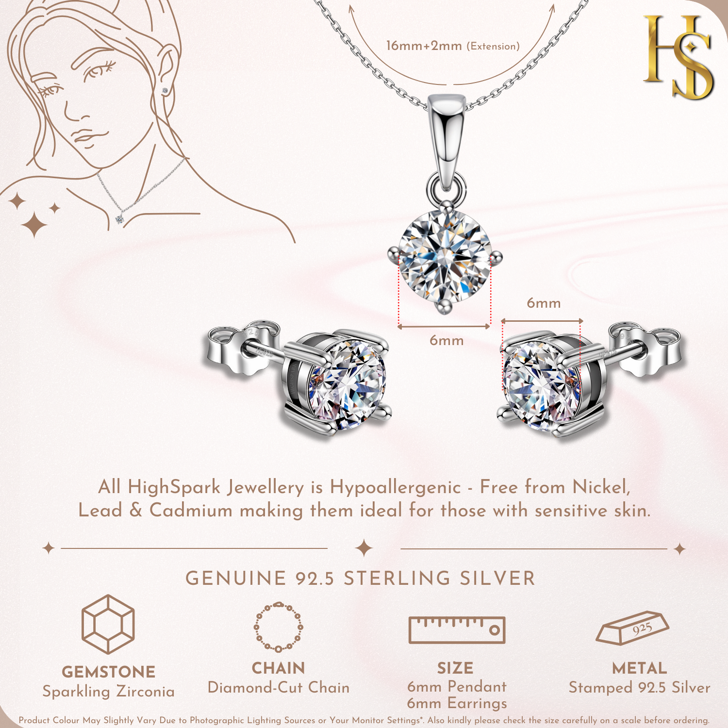 Solitaire Set - Round Earrings, Pendant & Chain in 92.5 Silver embellished with Sparkling Zirconia
