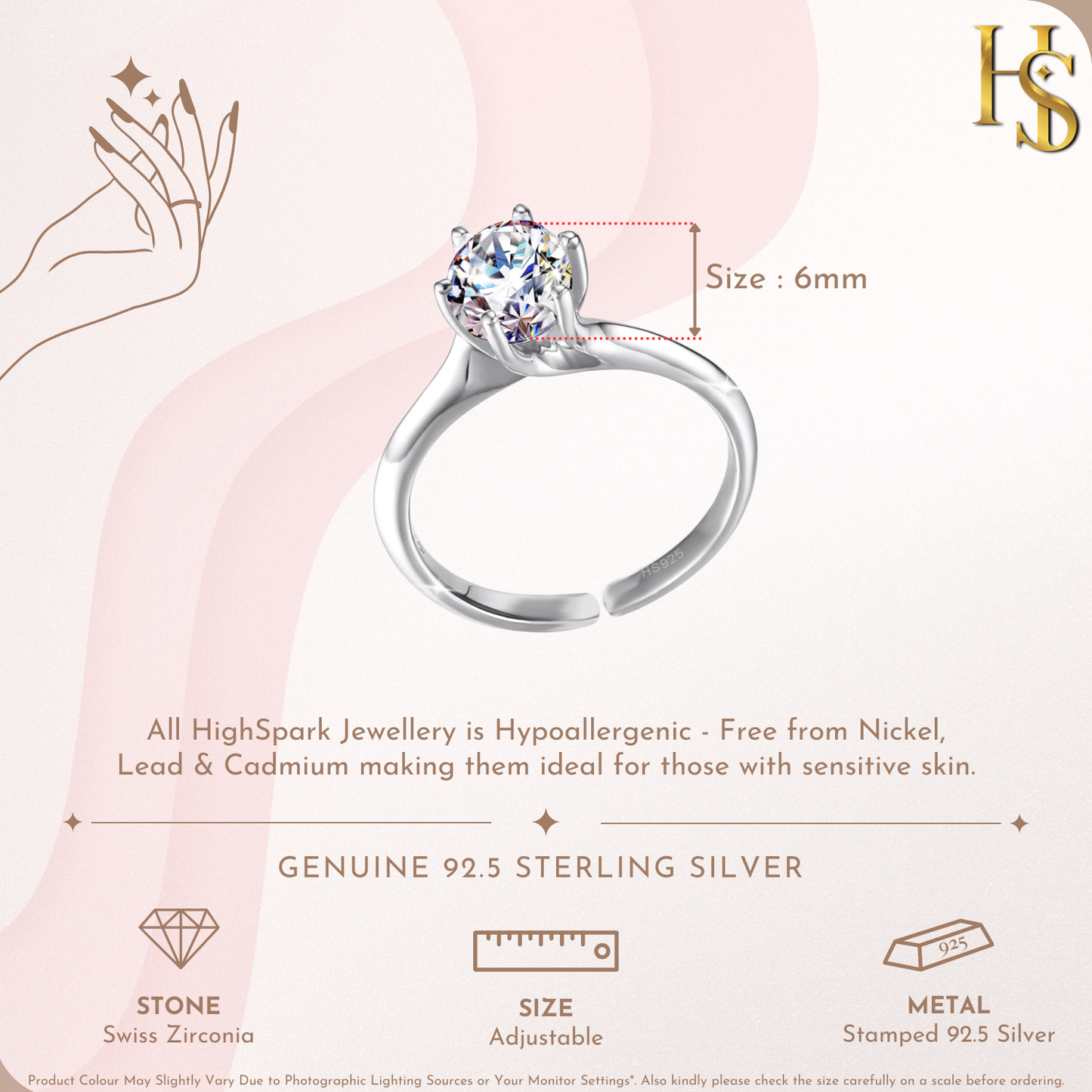 Solitaire Adjustable Ring 'Sparkling Martini' for women in 92.5 Silver