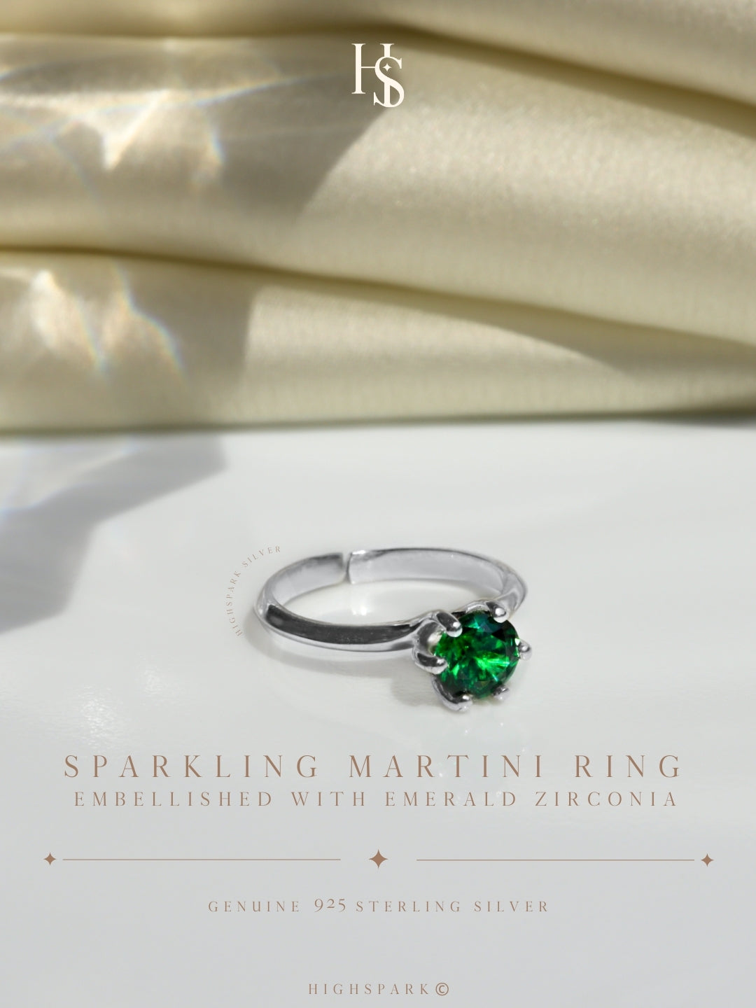 Sparkling Martini Ring Embellished with Emerald Zirconia in 925 Sterling Silver For Women