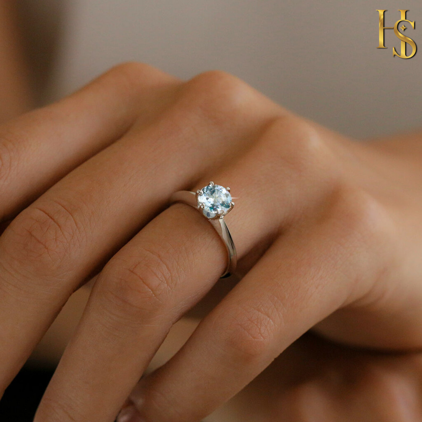 Sparkling Martini Solitaire Ring in 92.5 Sterling Silver Embellished With Blue Topaz Zirconia