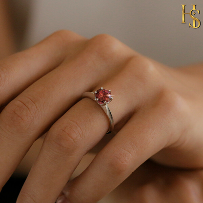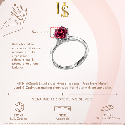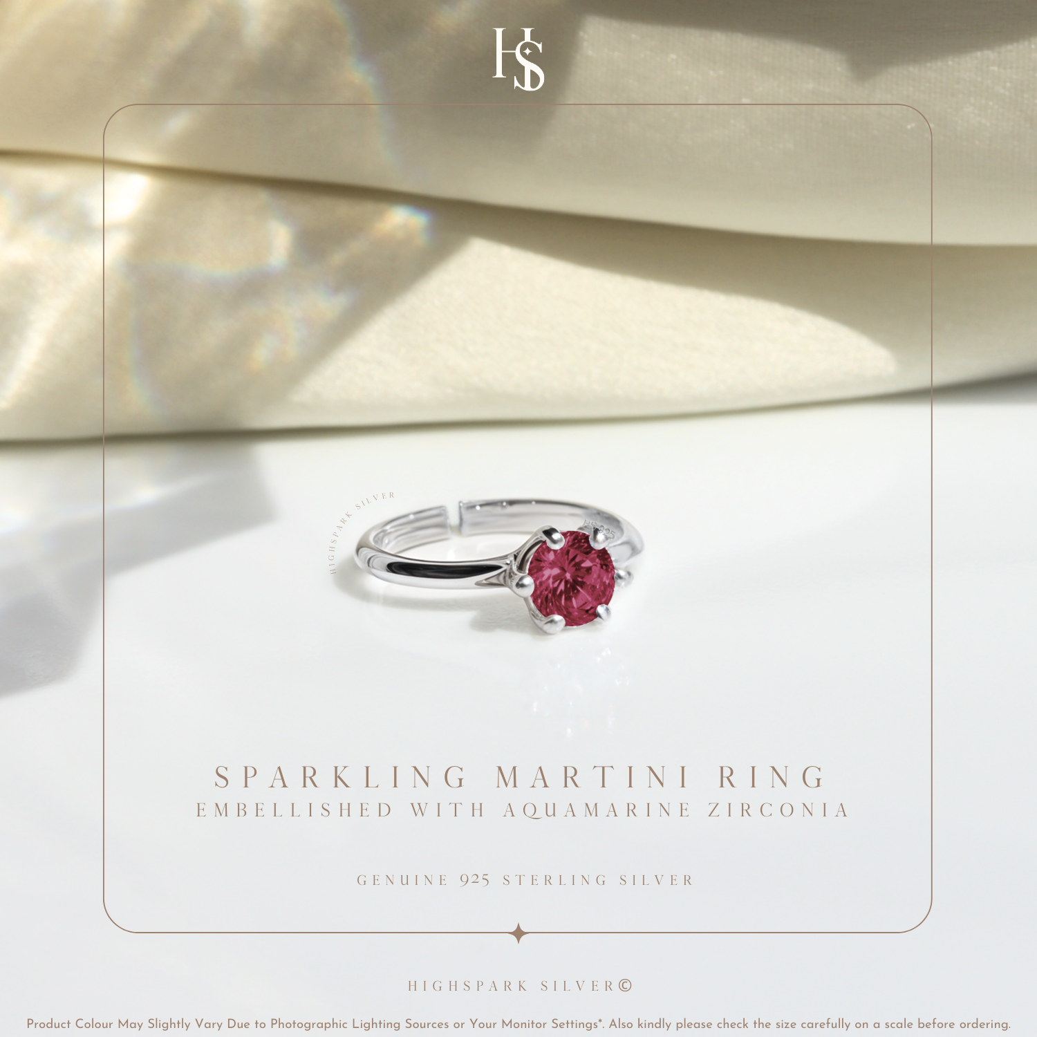 Sparkling Martini Solitaire Ring in 92.5 Sterling Silver Embellished With Ruby Zirconia
