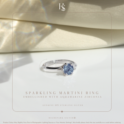 Sparkling Martini Solitaire Ring in 92.5 Sterling Silver Embellished With Sapphire Zirconia