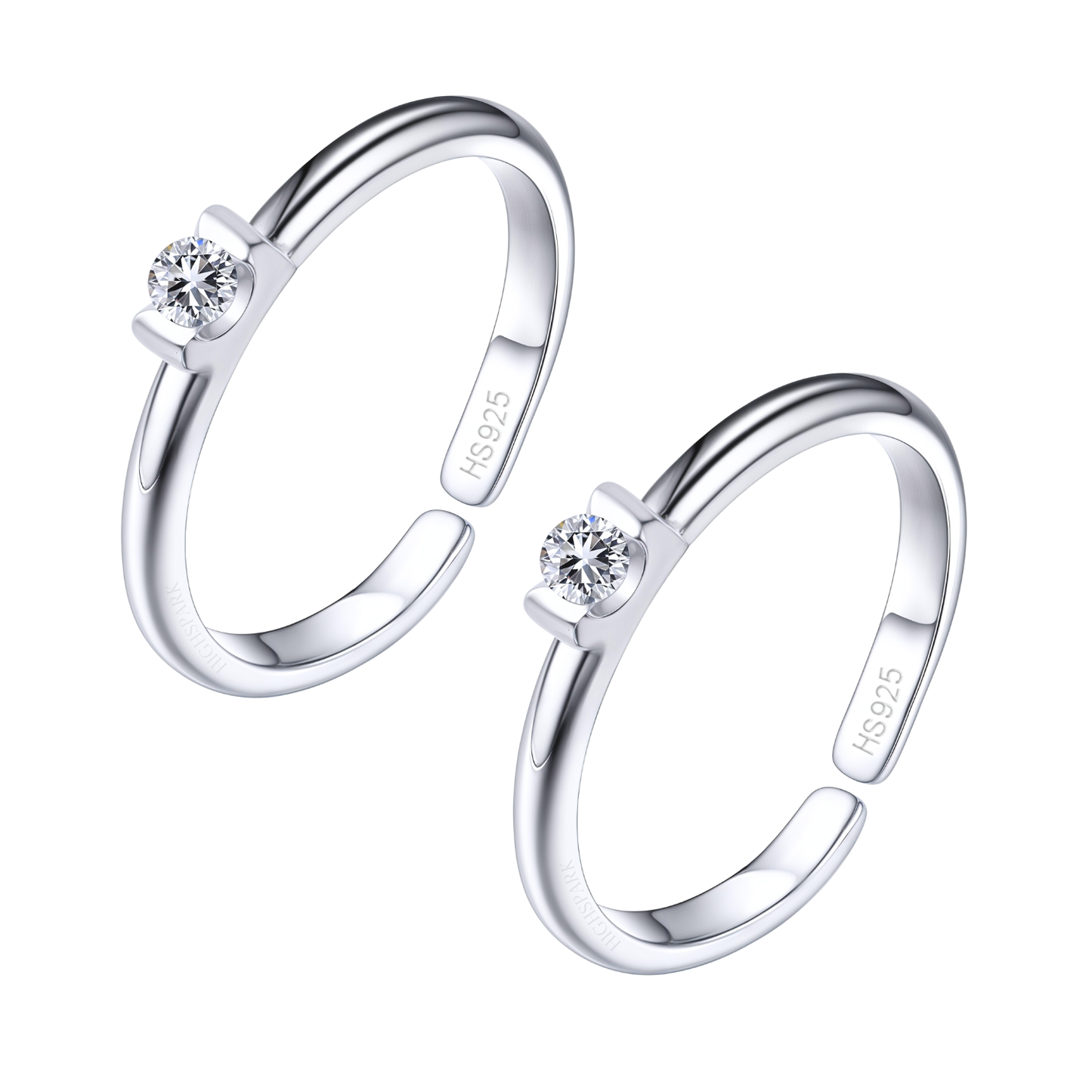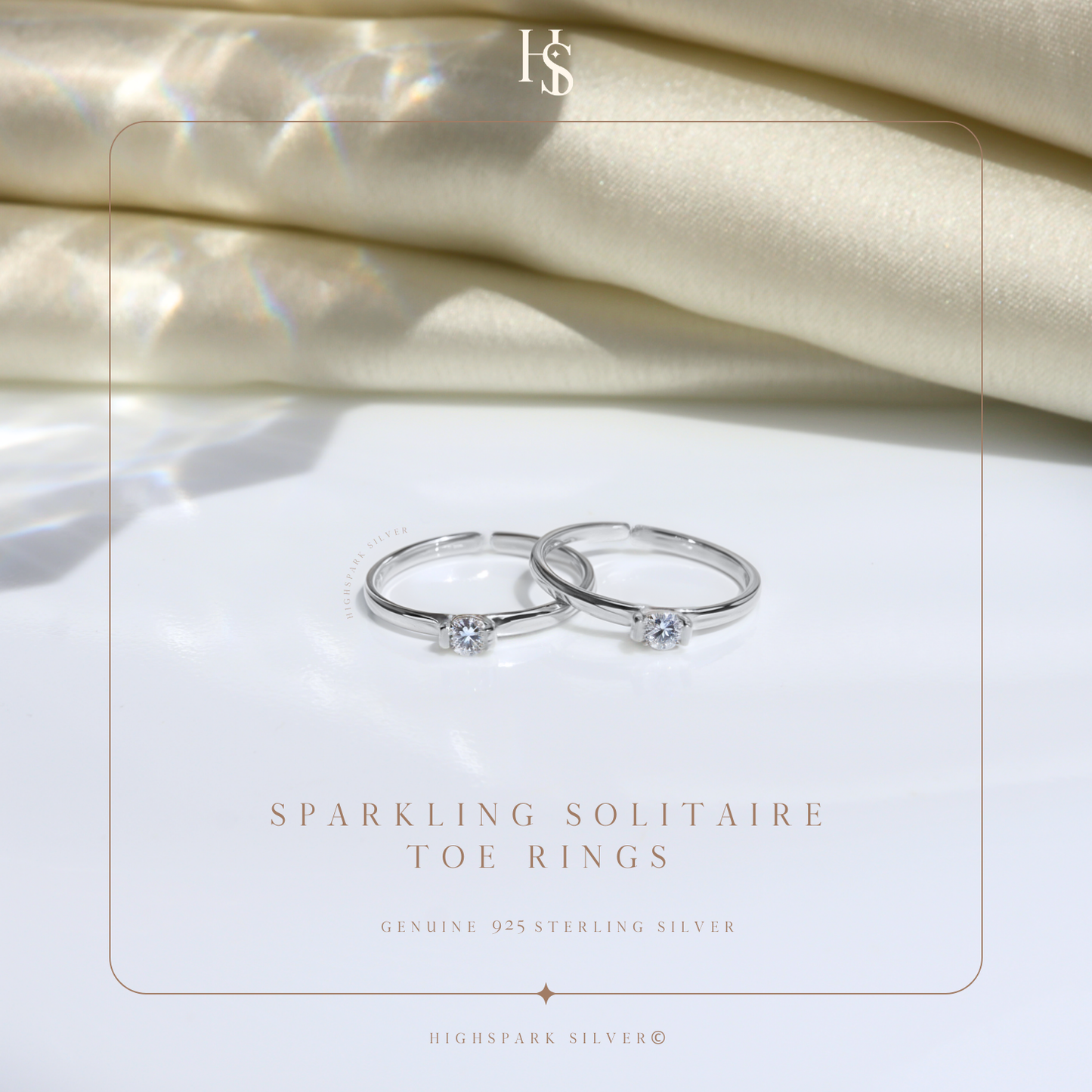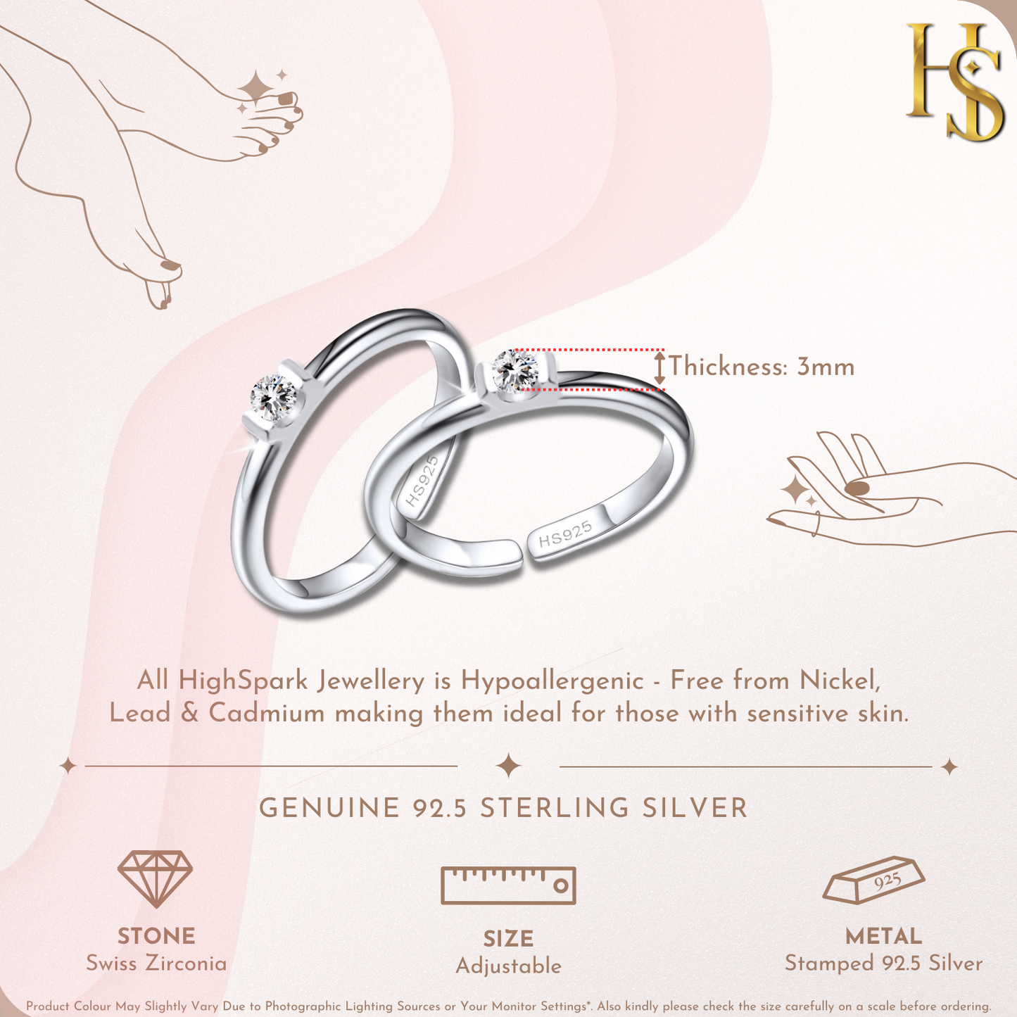 Sparkling Solitaire Toe Rings - Band Rings - 925 Sterling Silver - 2 Pieces