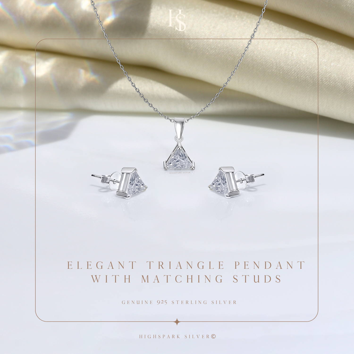 Sparkling Triangular Solitaire Earrings, Pendant & Chain Set in 92.5 Sterling Silver With Diamond like Brilliance Zirconia