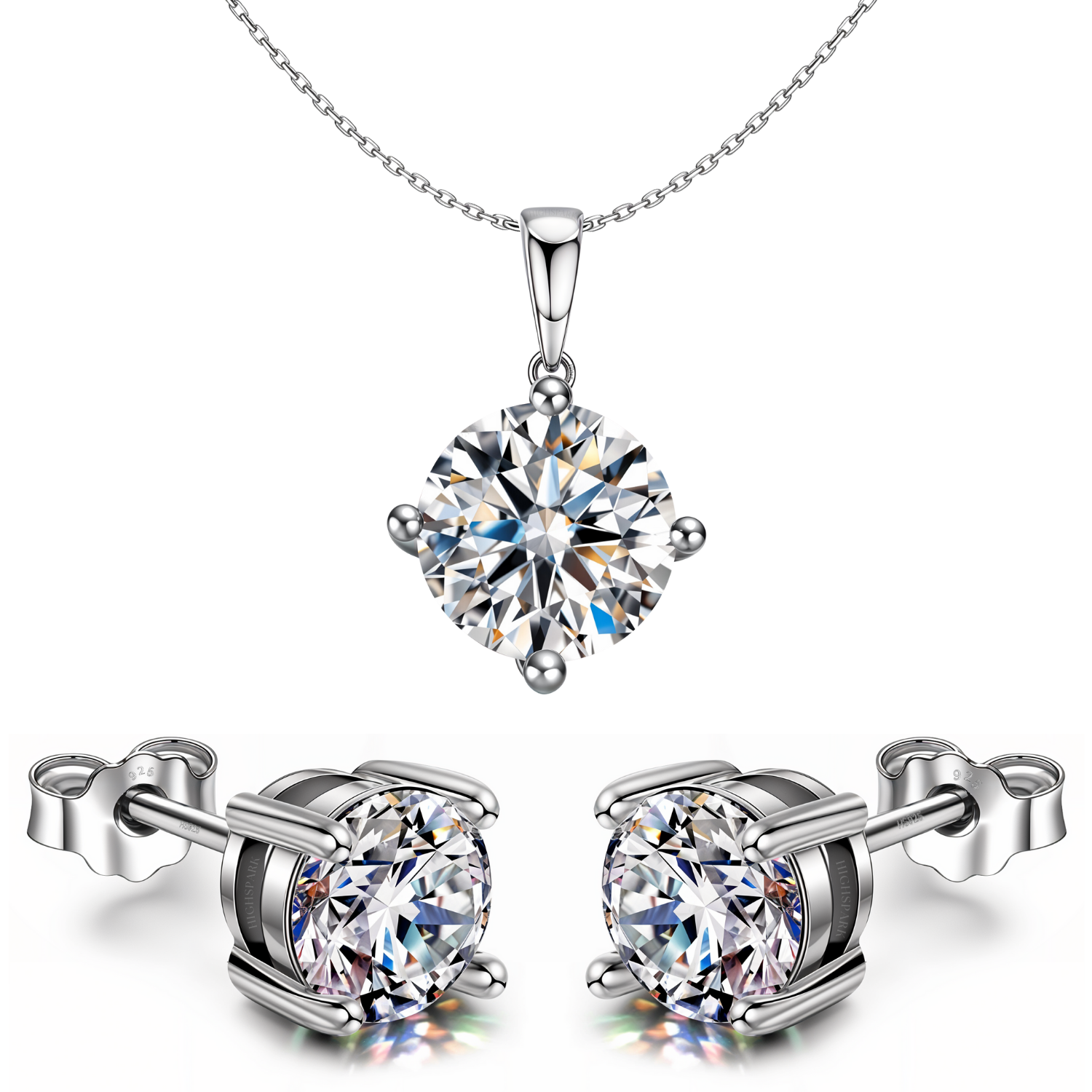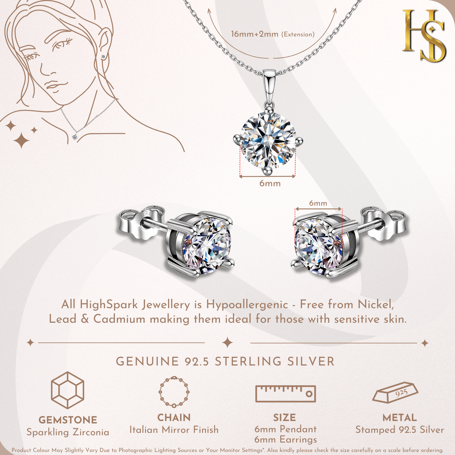 Sparkling Zirconia Birthstone Stud Pendant-Set With Earrings in 925 Sterling Silver For Women