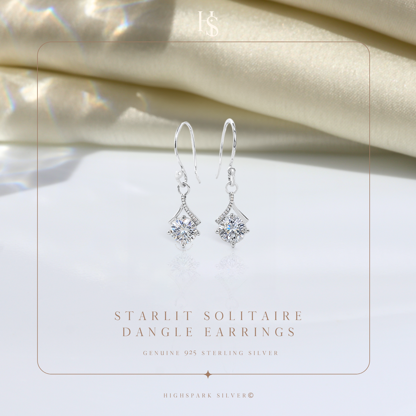 Starlit Solitaire Dangle Earrings in 92.5 Sterling Silver with Diamond like Brilliance Zirconia