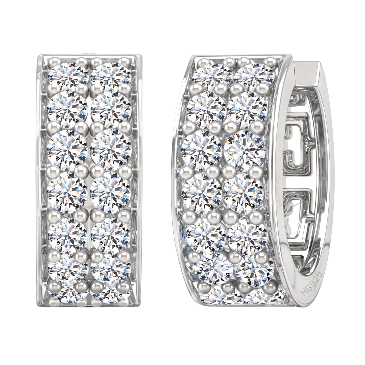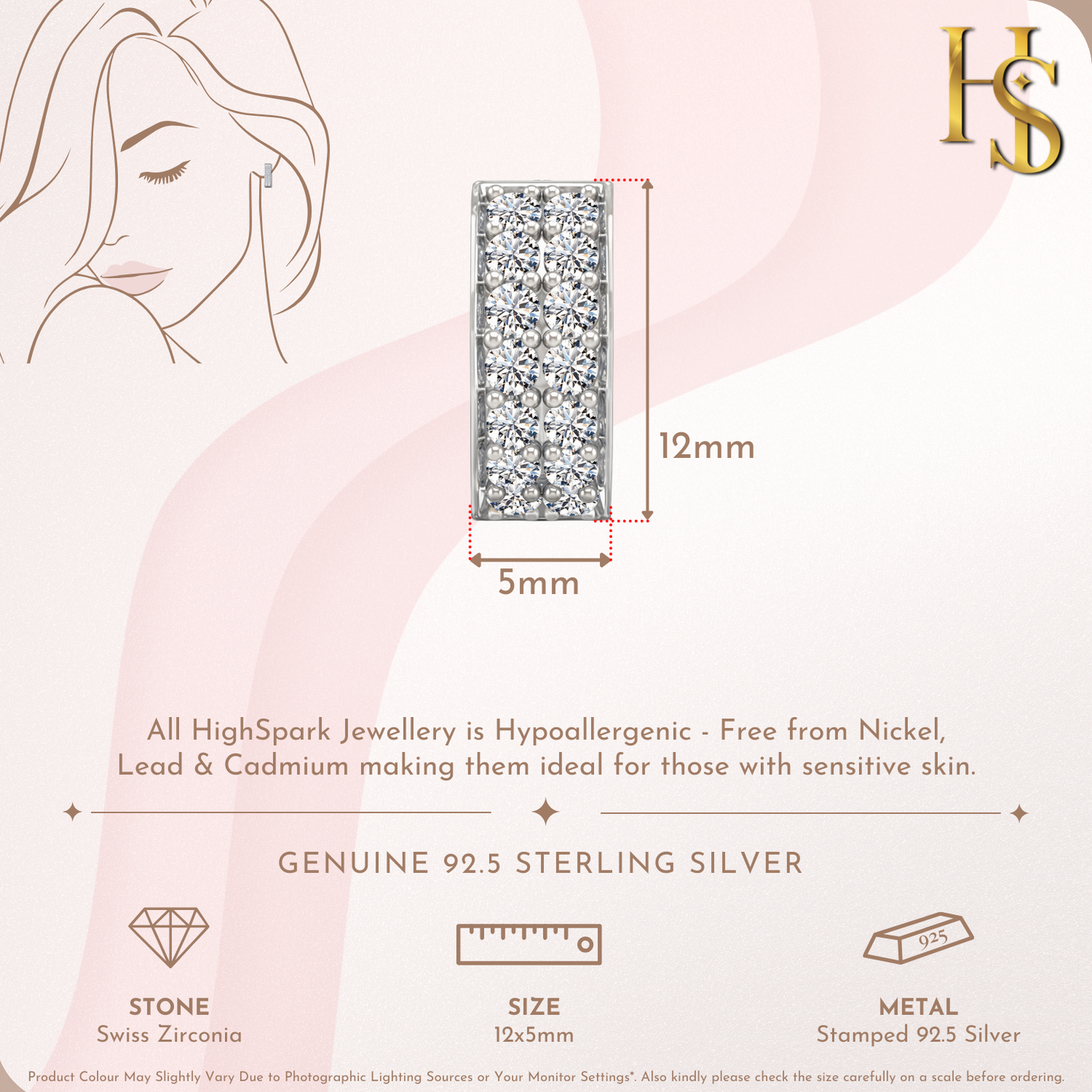 Stellar Double Line Studded Hoop Earrings in 925 Sterling Silver with Diamond like Brilliance Zirconia