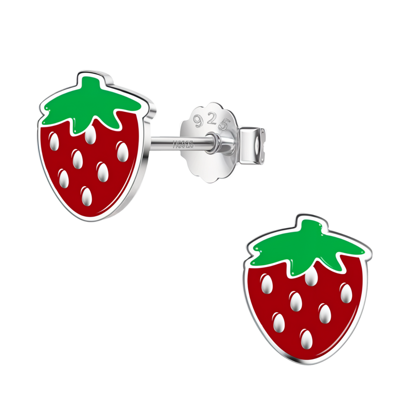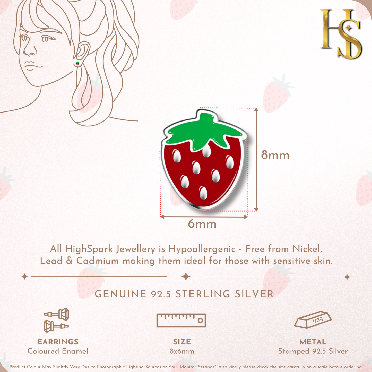 Strawberry Delight Cute Enamel Stud Earrings in 925 Sterling Silver