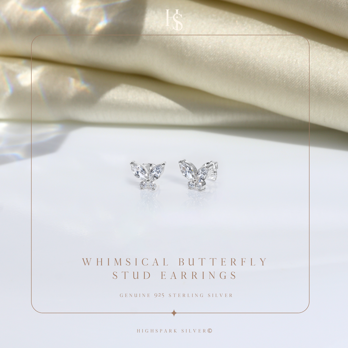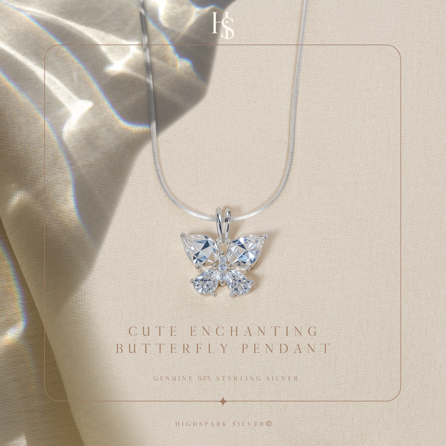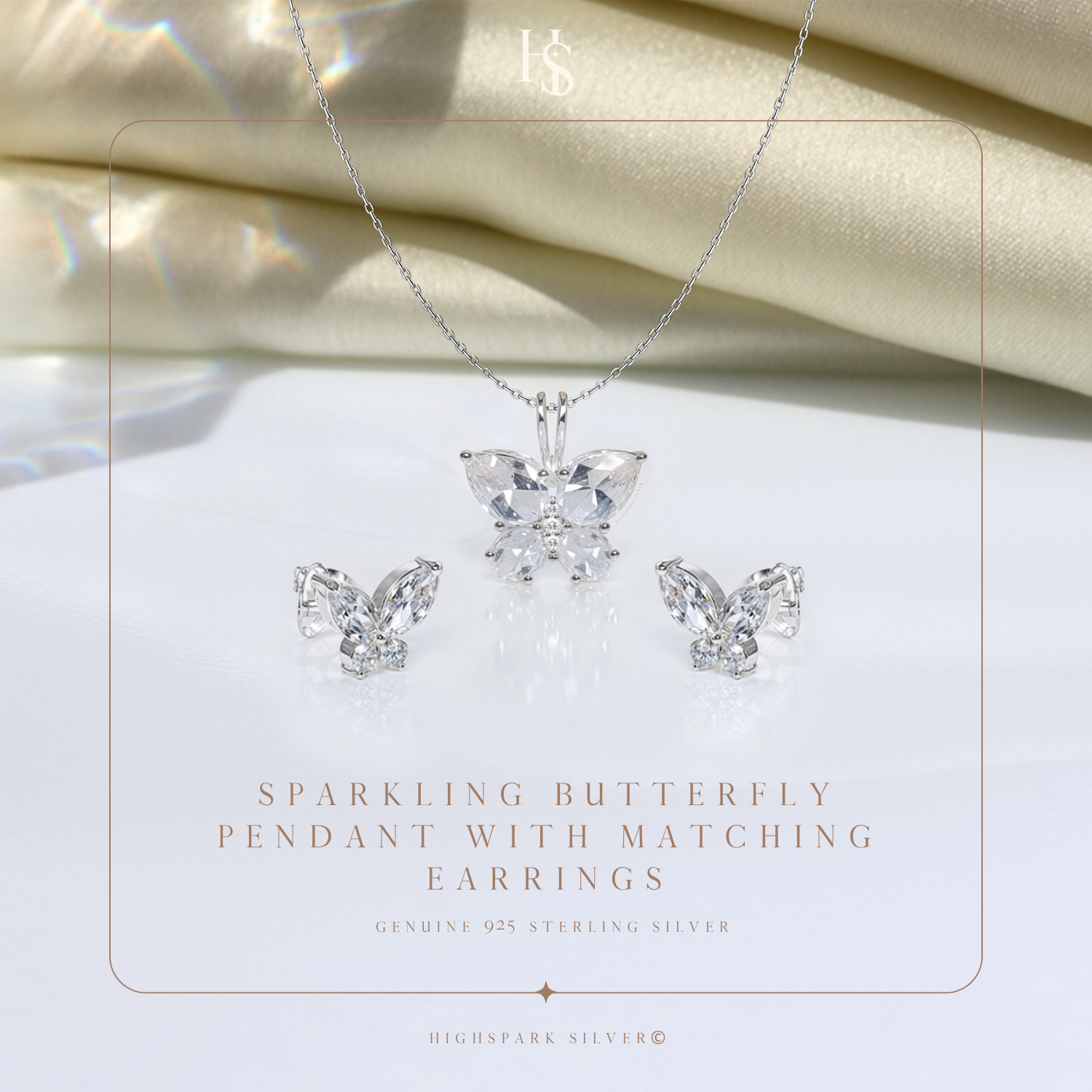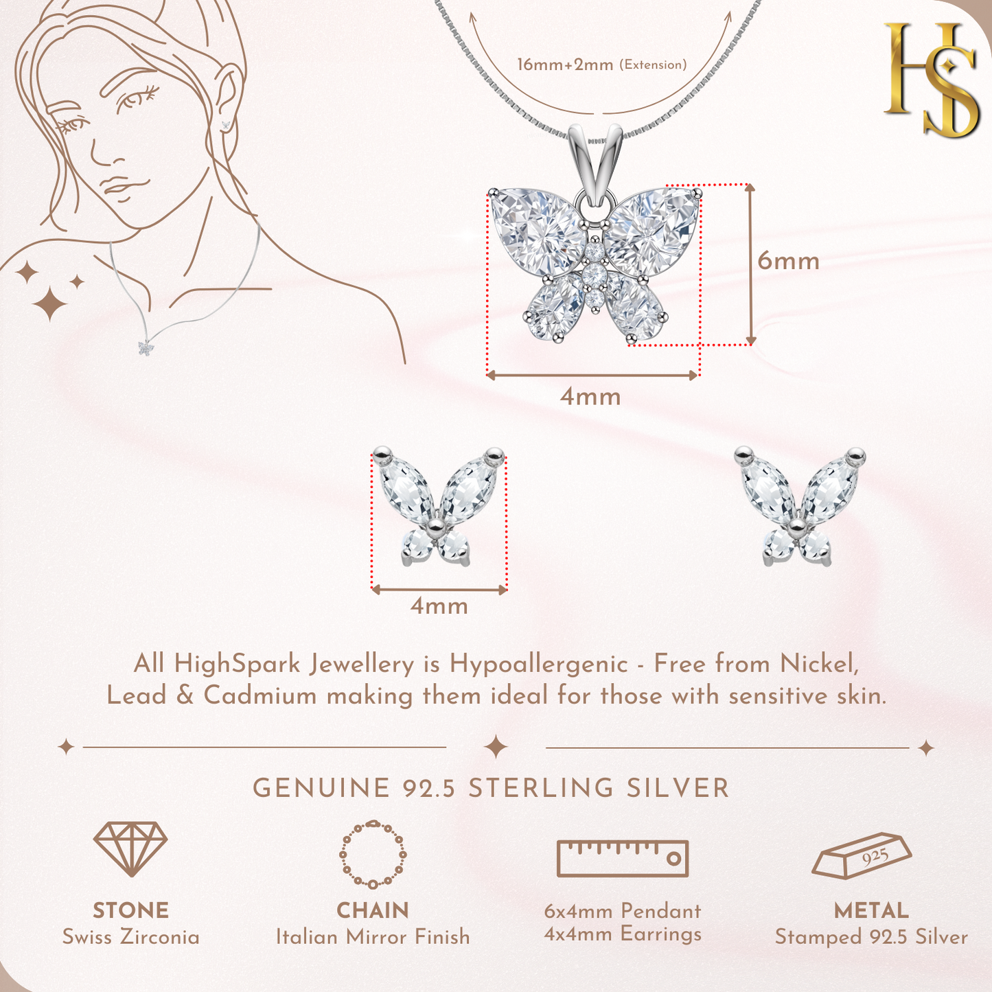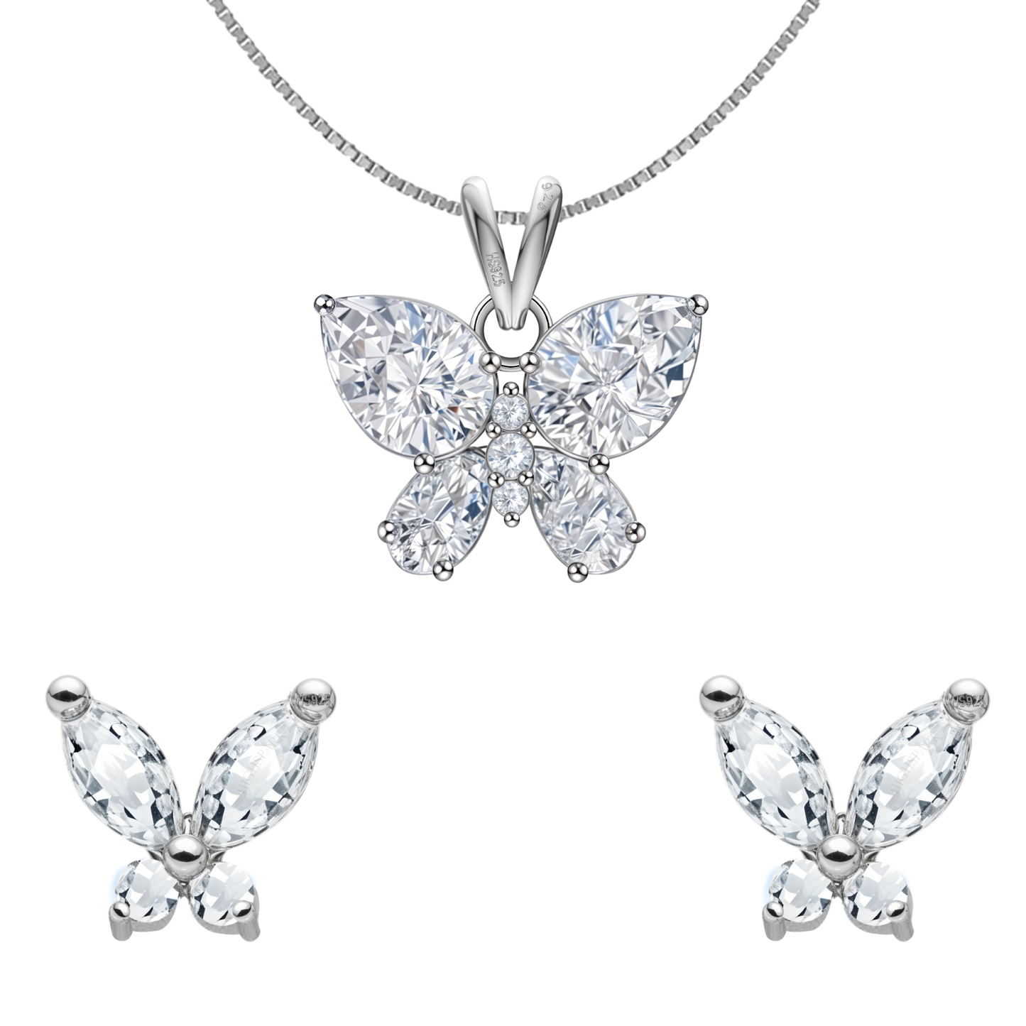 Studded Butterfly Solitaire Earrings, Pendant & Chain Set in 92.5 Sterling Silver With Diamond like Brilliance Zirconia