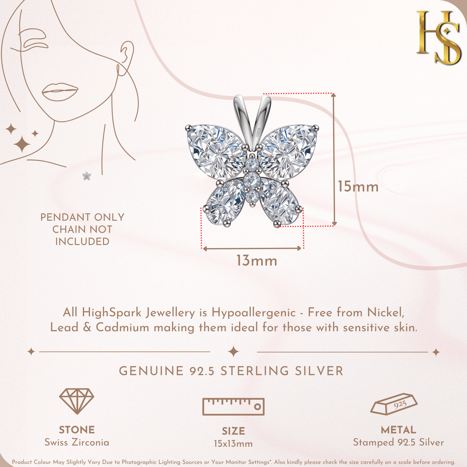 Studded Butterfly Solitaire Pendant in 92.5 Sterling Silver With Diamond like Brilliance Zirconia