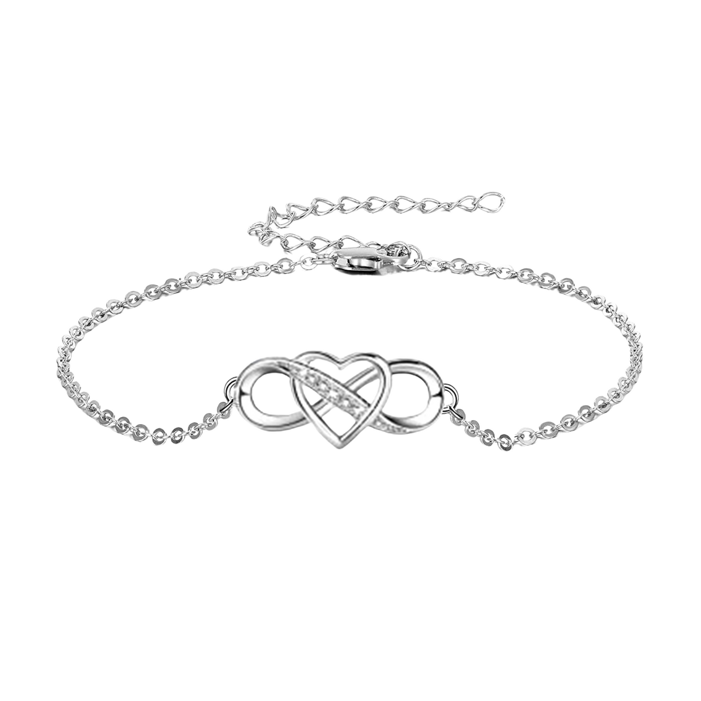 Studded Infinity Heart Anklet in 925 Sterling Silver With Diamond like Brilliance Sparkling Zirconia