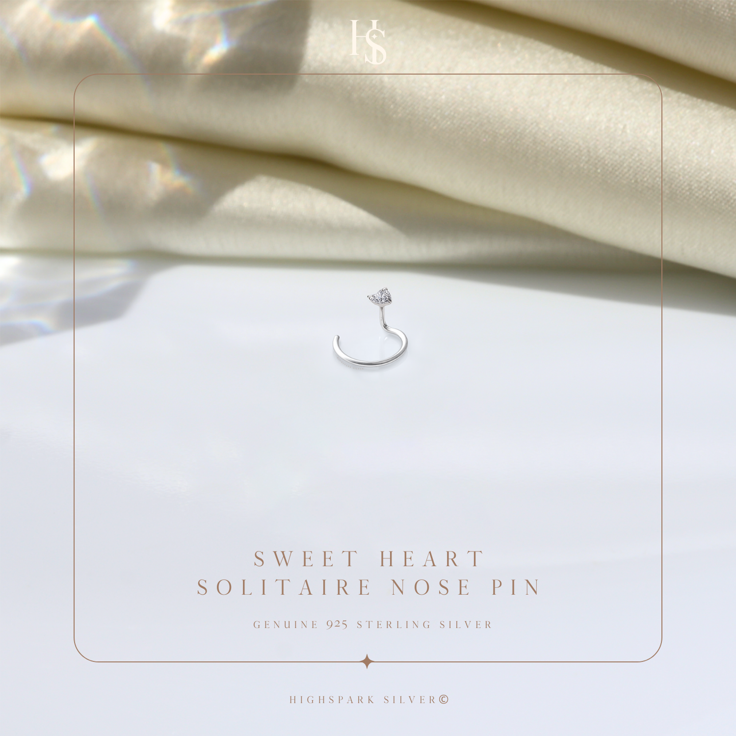 Sweet Heart Solitaire Nose Pin in 925 Sterling Silver For Women