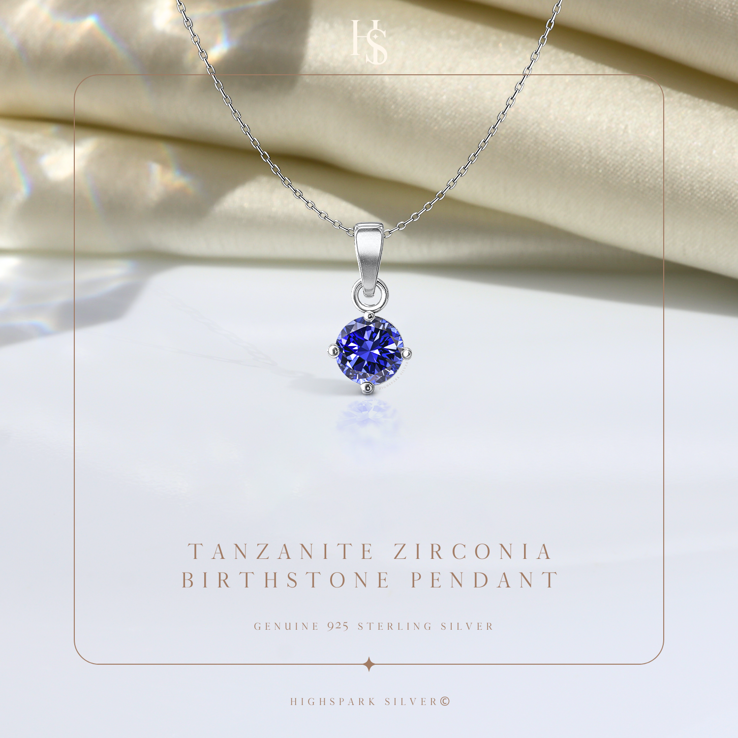 Tanzanite Zirconia Birthstone Pendant With Chain in 925 Sterling Silver For Women