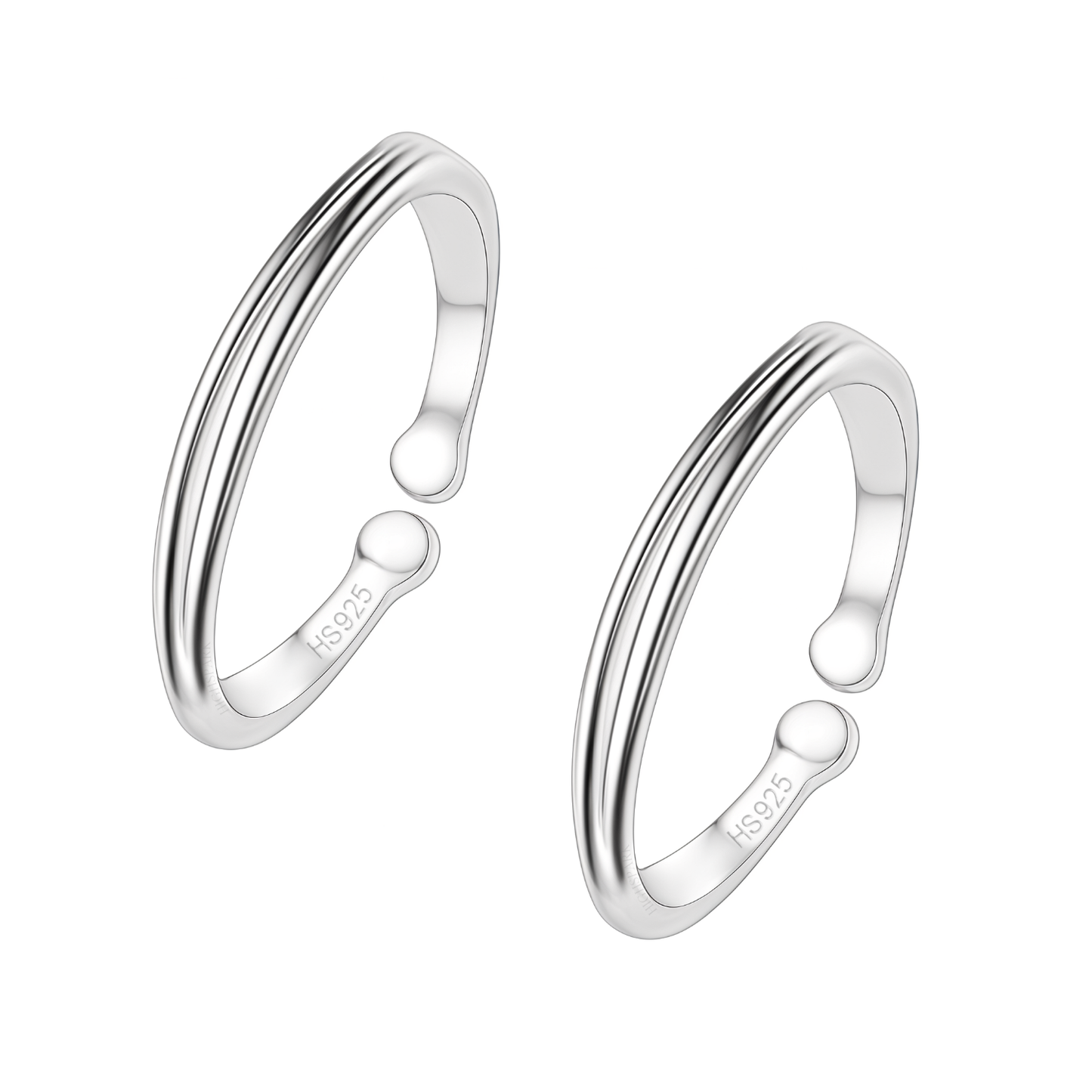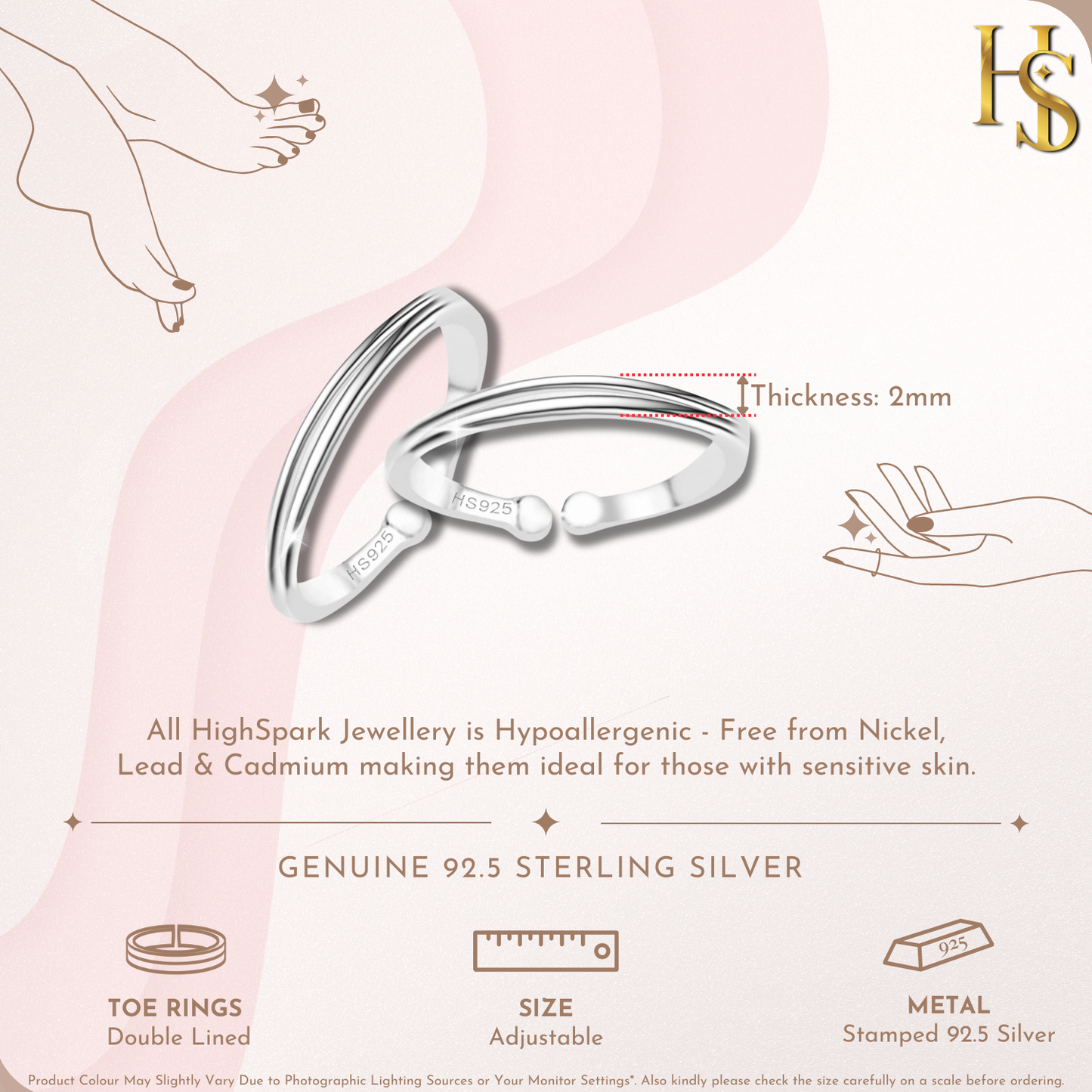 Timeless Double Line Toe Rings - Band Rings - 925 Sterling Silver - 2 Pieces
