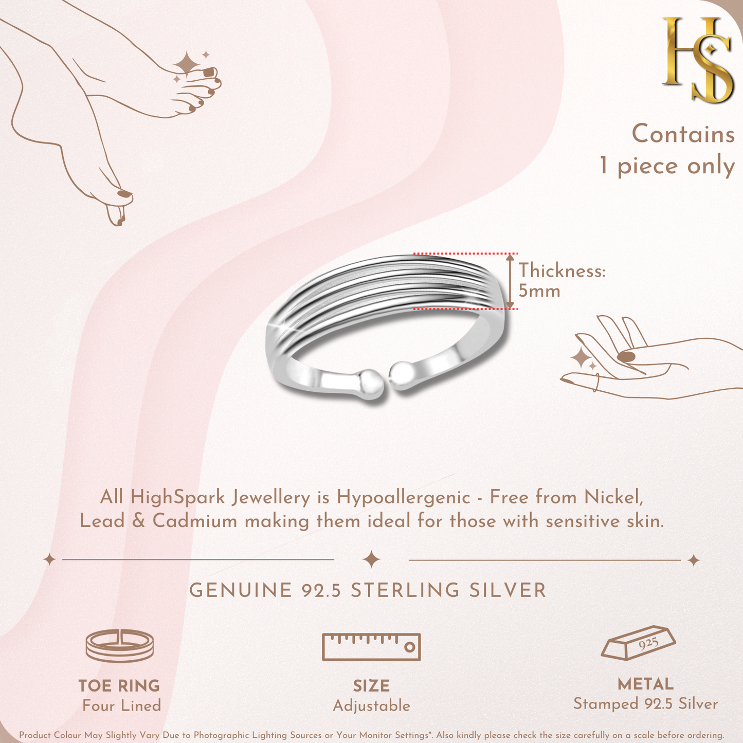 Timeless Four Line Toe Ring - Band Ring - 925 Sterling Silver - 1 Piece
