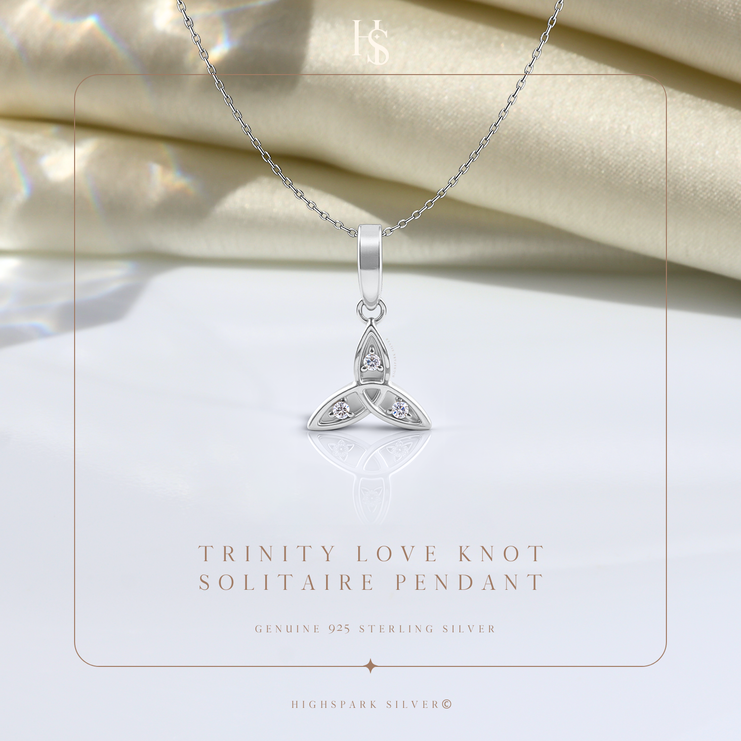 Trinity Love Knot Solitaire Pendant in 92.5 Sterling Silver For Women
