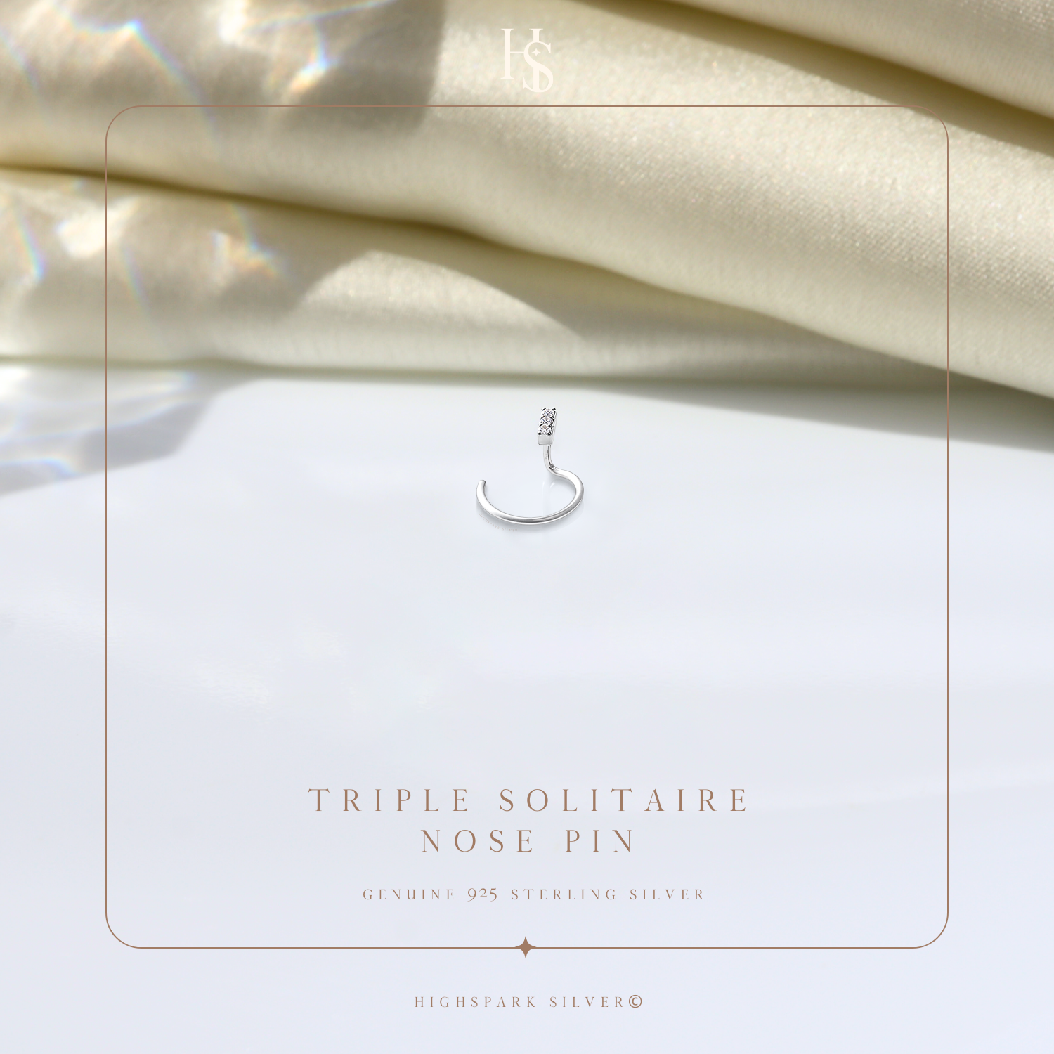 Triple Solitaire Nose Pin in 925 Sterling Silver For Women