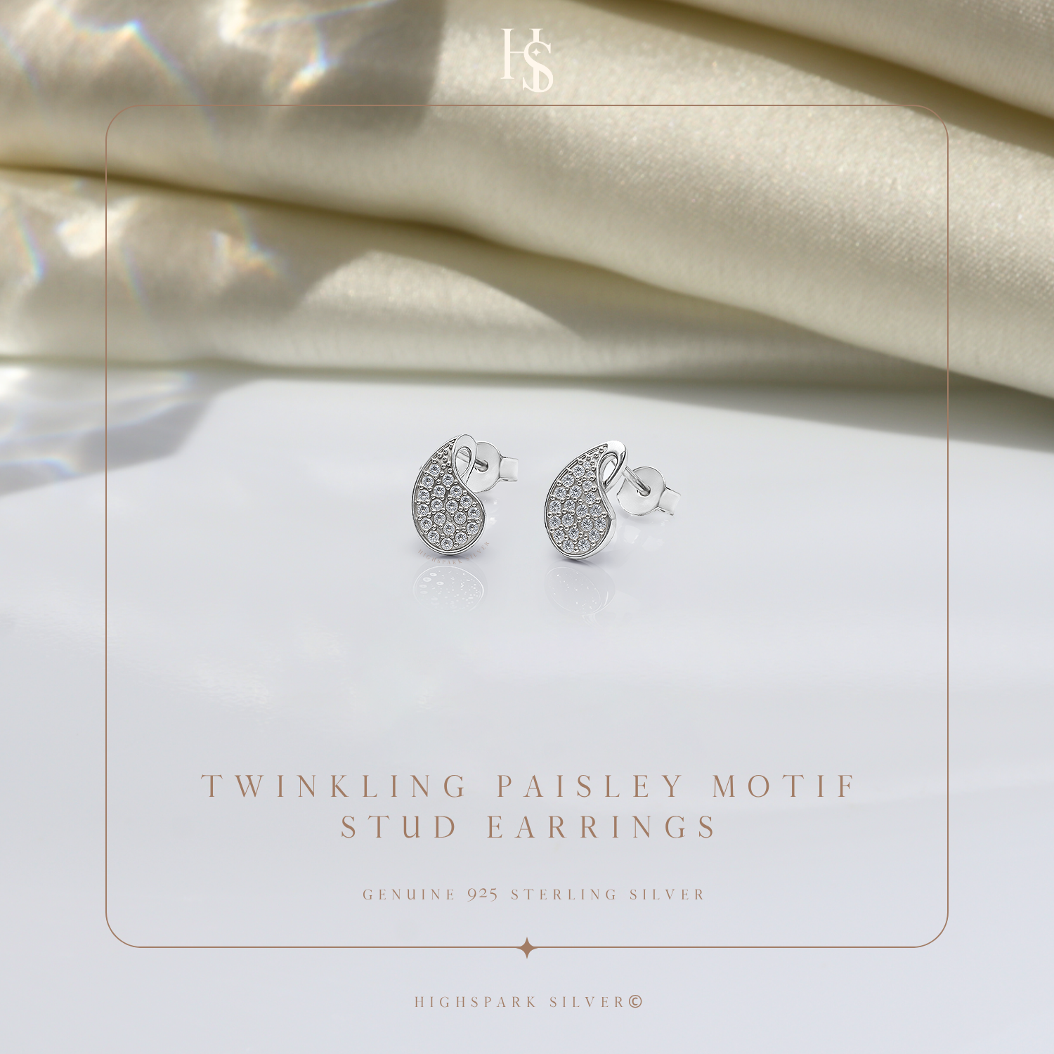 Twinkling Paisley Motif Stud Earrings in 925 Sterling Silver for Women