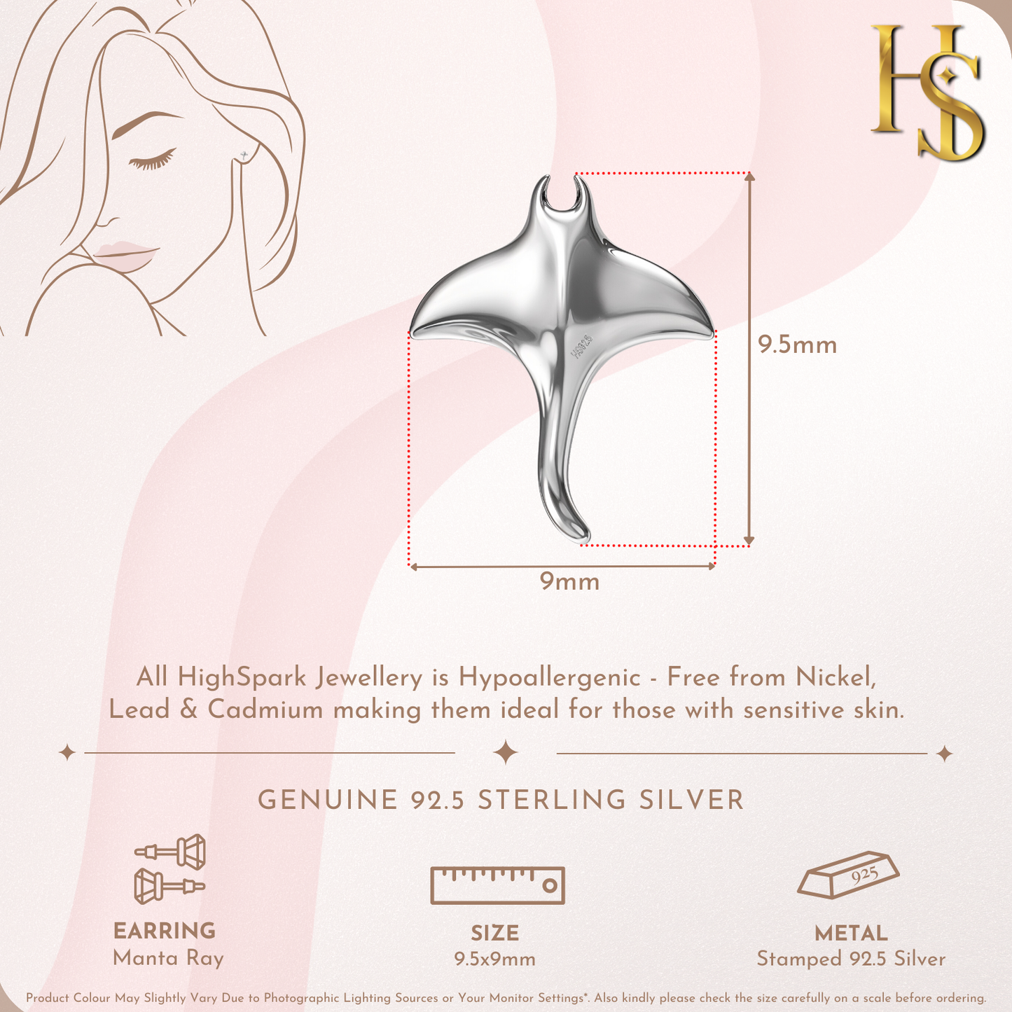 Unique Hawaiian Manta Ray Earrings in 92.5 Sterling Silver for Women