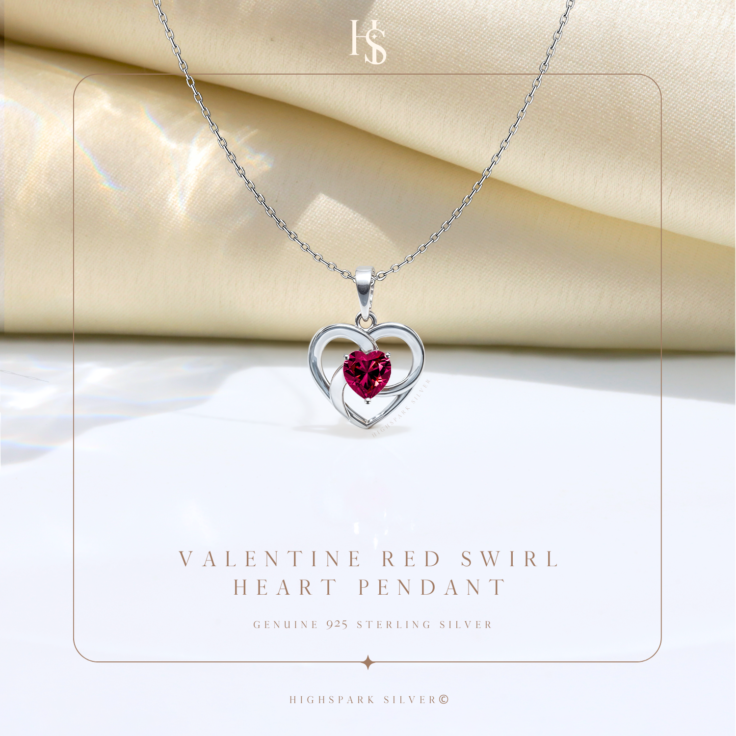 Valentine Red Swirl Heart Pendant in 925 Sterling Silver for Women with Brilliance Sparkling Zirconia