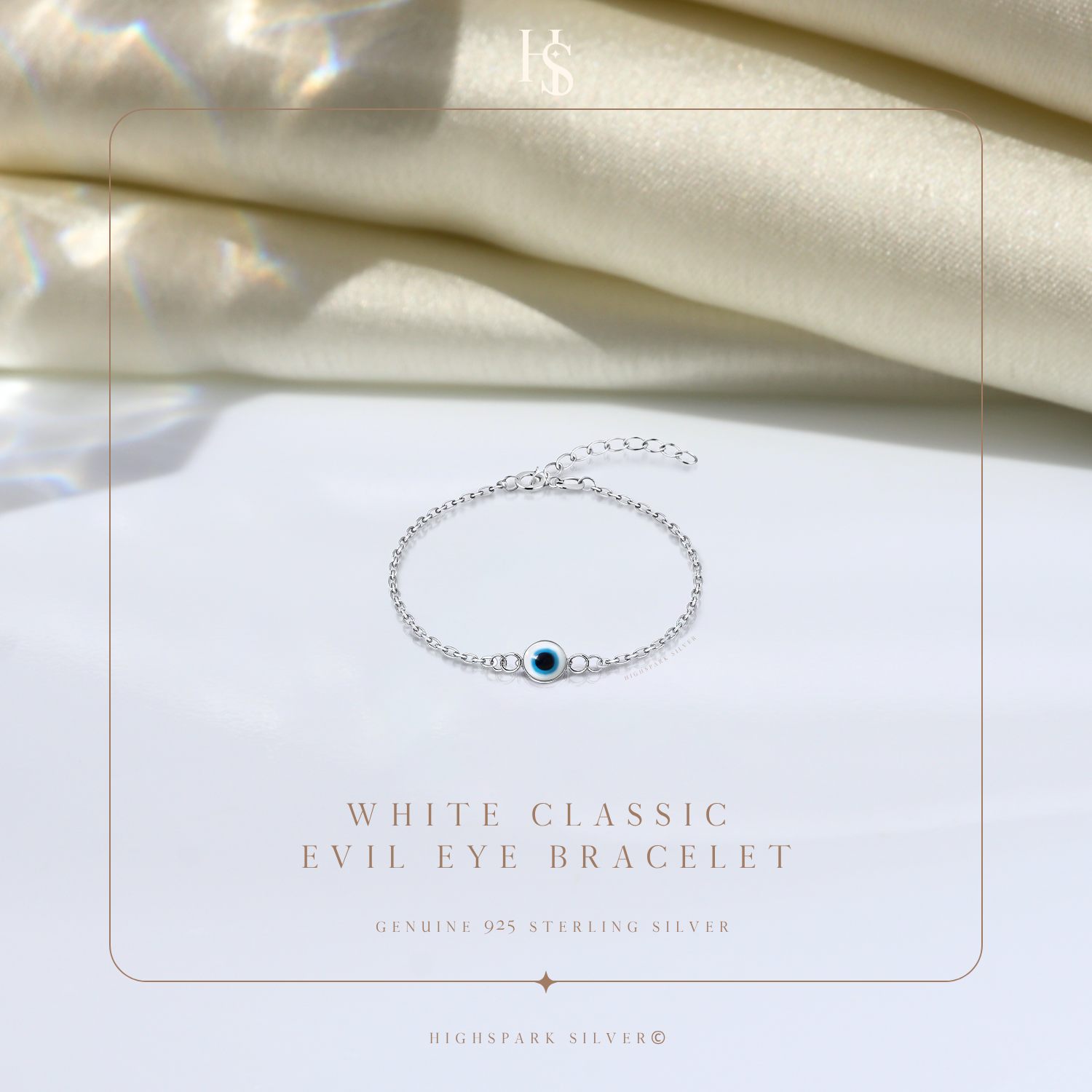 White Classis Evil Eye Bracelet In 925 Sterling Silver For Women