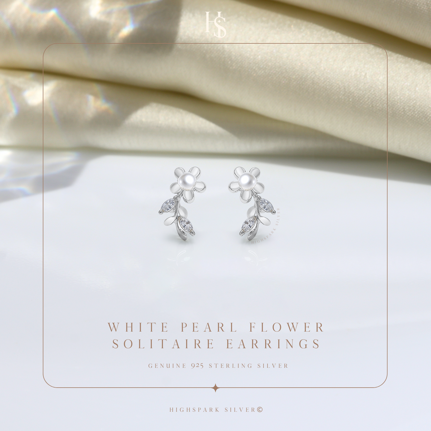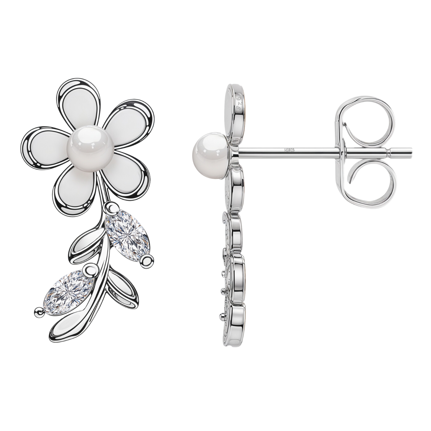 White Pearl Flower Solitaire Earrings in 92.5 Sterling Silver With Diamond like Brilliance Sparkling Zirconia