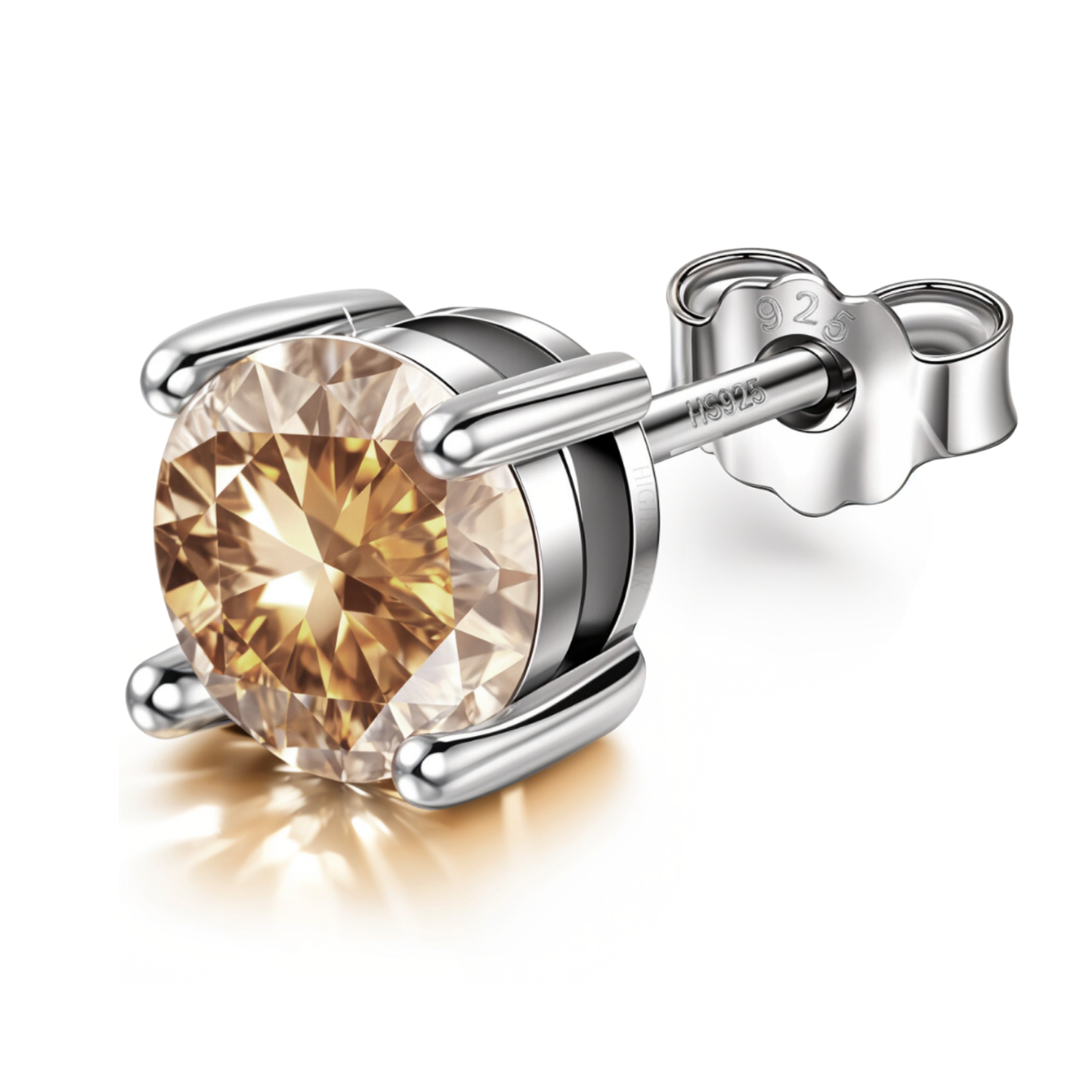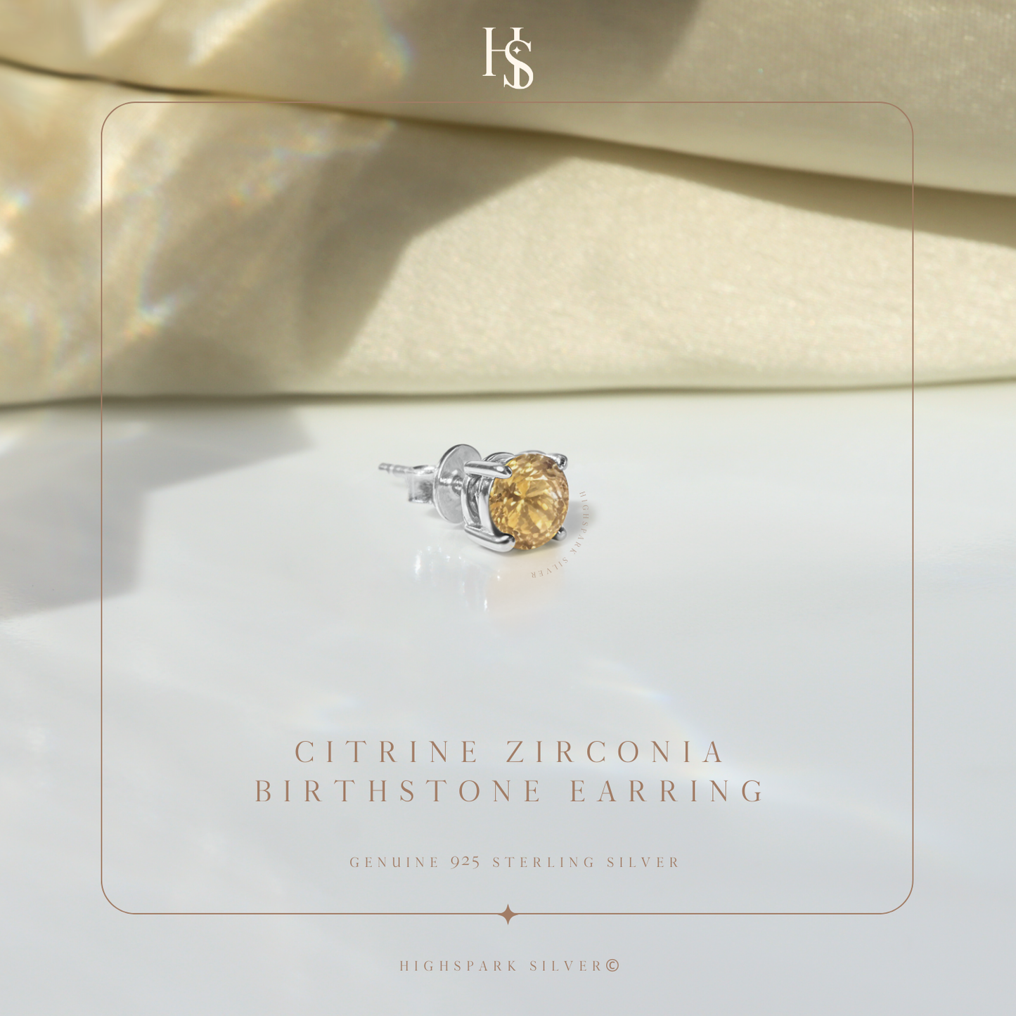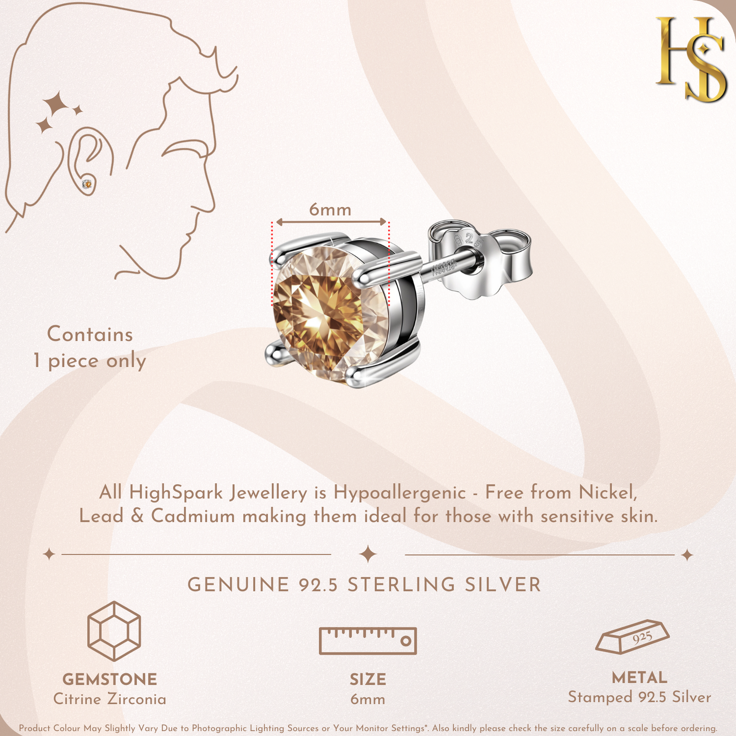 Men's Solitaire Stud Earring - 925 Silver - Birthstone November Citrine Zirconia - 1 Piece