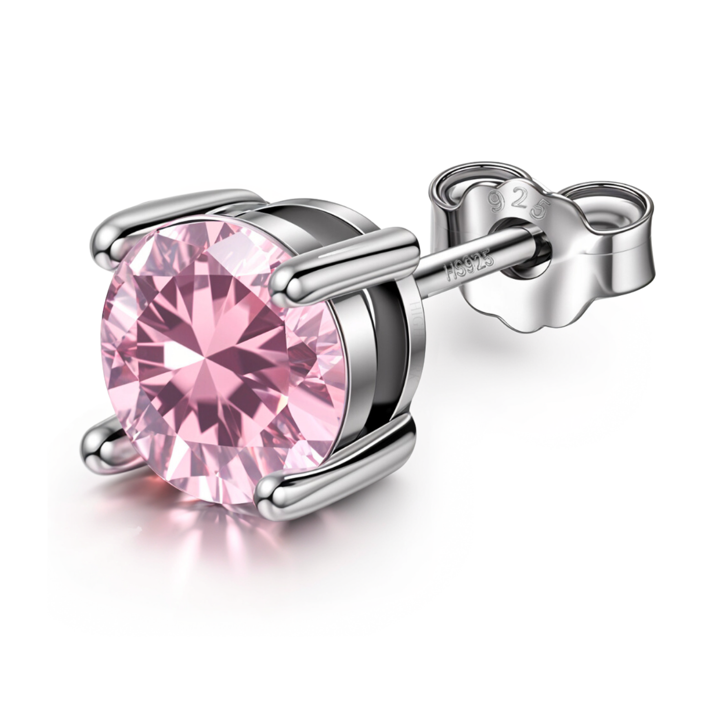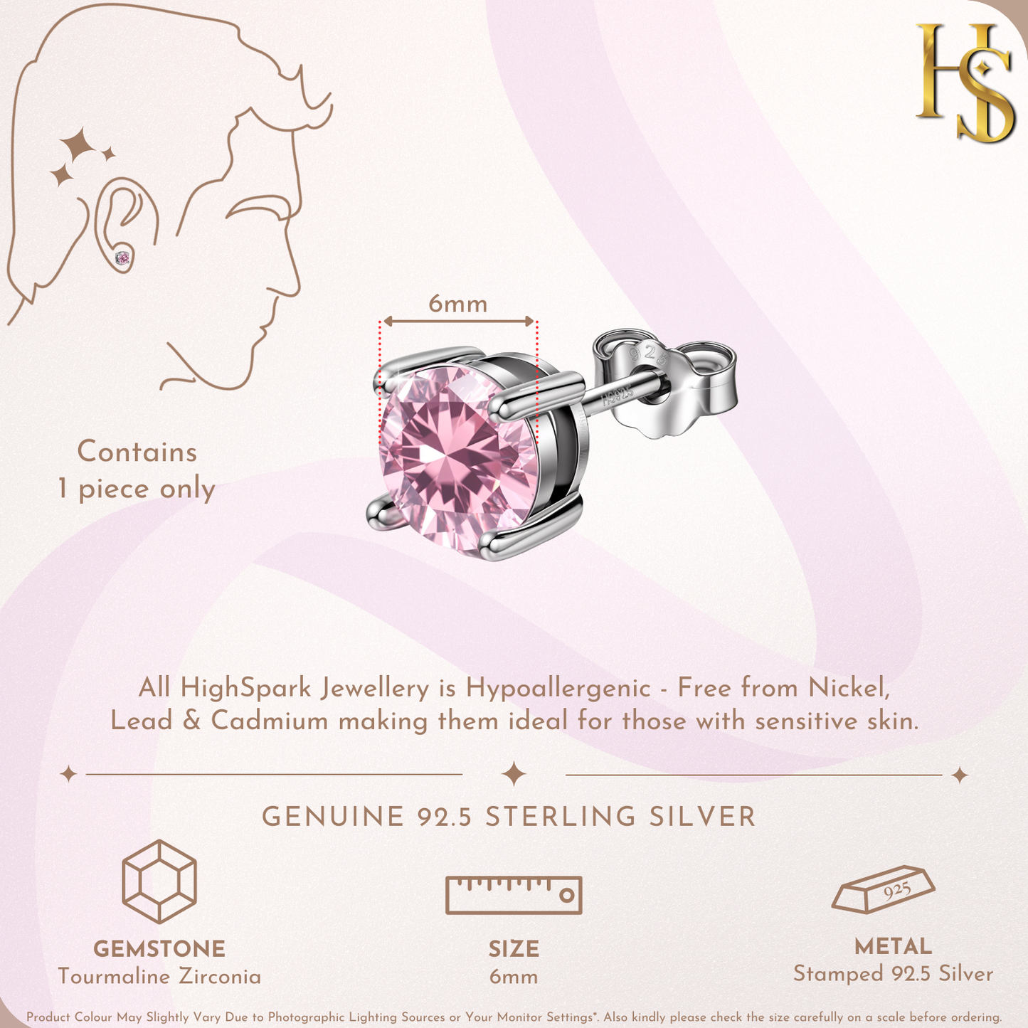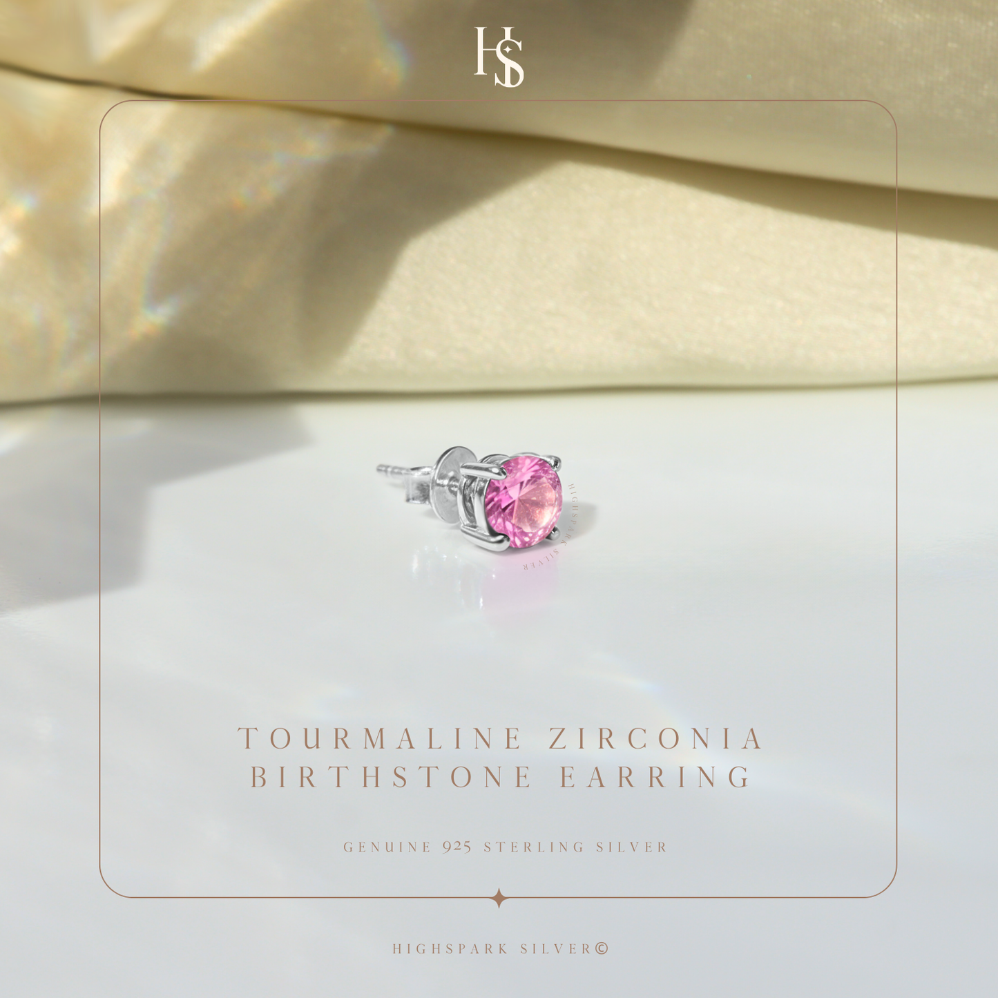 Men's Solitaire Stud Earring - 925 Silver - Birthstone October Tourmaline Zirconia - 1 Piece