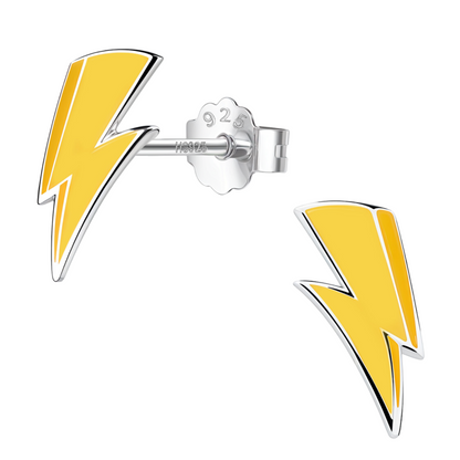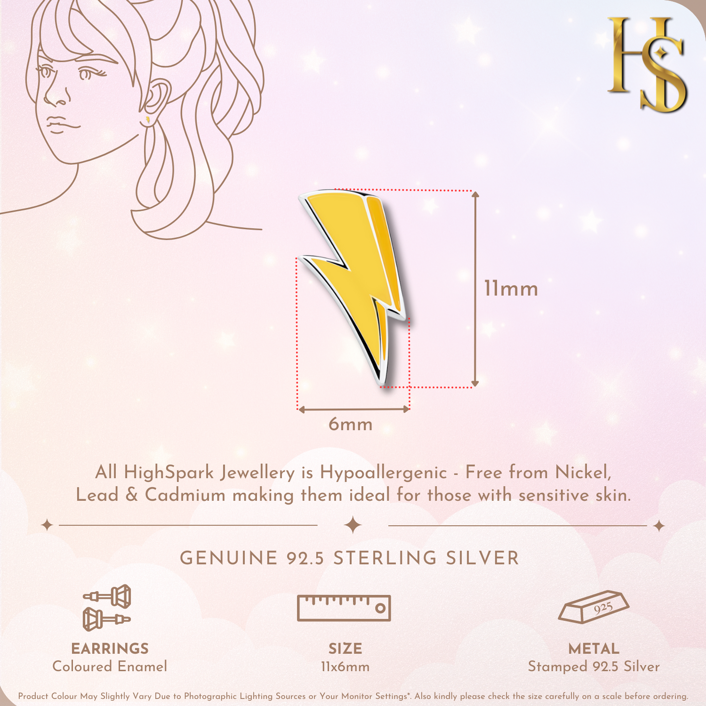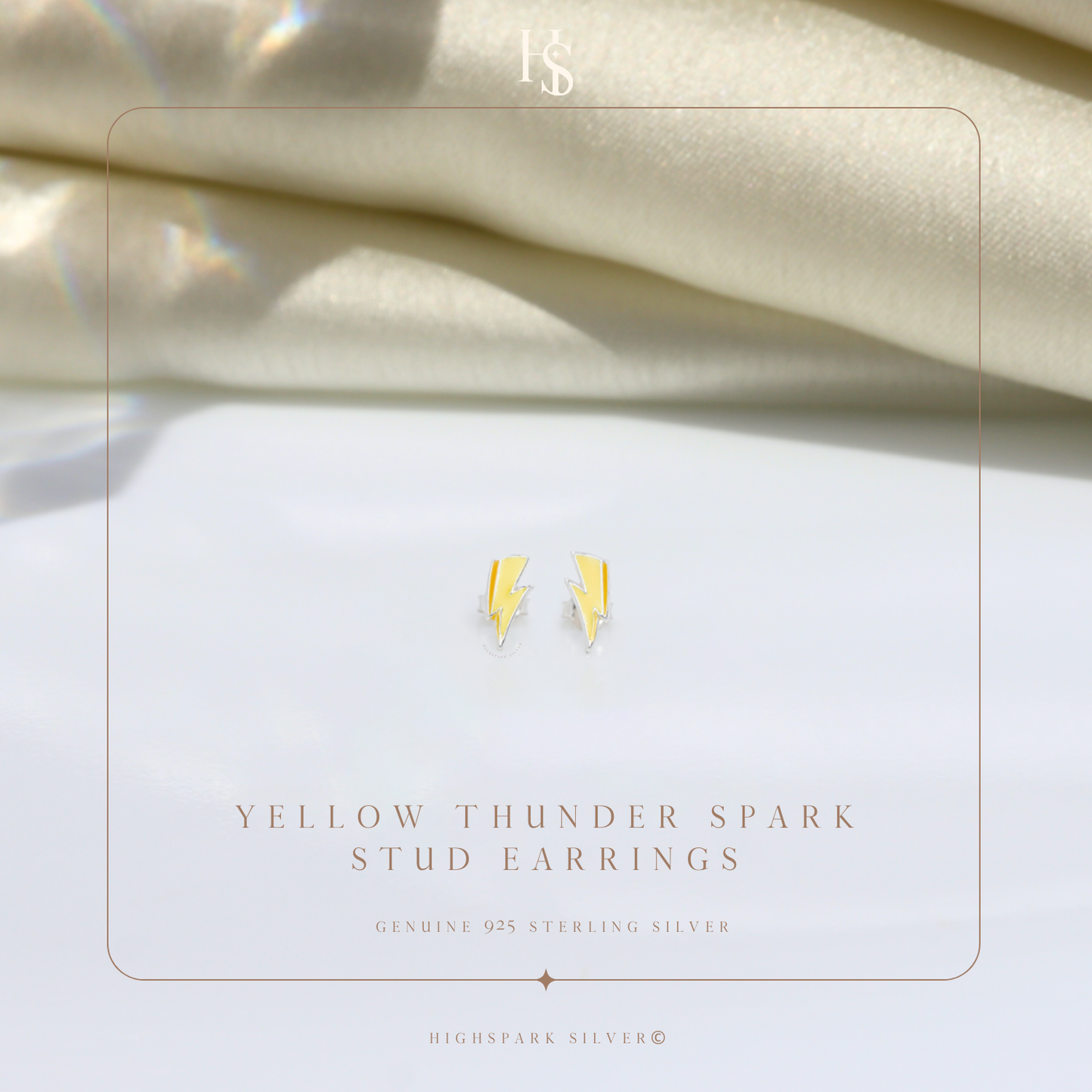 Yellow Thunder Spark Cute Enamel Stud Earrings in 925 Sterling Silver